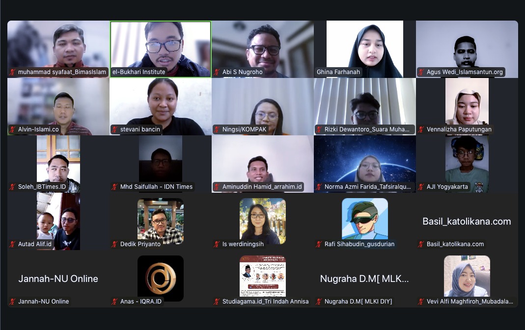 El-Bukhari Intitute dengan dukungan dari Yayasan Keadilan dan Perdamaian Indonesia pada Jum’at, 25 April 2025 menyelenggarakan Media Gathering “Konten Media Bernuansa Moderasi Beragama untuk Mendukung Pemenuhan Hak Beragama: Dari Advokasi Hak Asasi Manusia sampai Transformasi Konflik” yang di kemas dalam bentuk Webinar daring. Kegiatan ini memiliki tujuan untuk Menghadirkan Dialog Terbuka antara pemerintah, representasi masyarakat sipil, serta perwakilan berbagai media (media komunitas, media keagamaan, dan media mainstream) untuk membahas tantangan dan peluang pemberitaan terkait pemenuhan dan pelanggaran hak atas toleransi dan kebebasan beragama/berkeyakinan. Mengidentifikasi Praktik Baik Media dengan menggali dan mendokumentasikan praktik baik (best practices) media dalam memberitakan isu-isu keagamaan secara inklusif, adil, dan transformatif, terutama dalam konteks pencegahan serta resolusi konflik keagamaan. Terakhir Mendorong Kolaborasi Publikasi antar-media untuk memproduksi dan mendistribusikan berbagai konten seputar pemenuhan hak beragama, moderasi beragama, serta penguatan kebebasan beragama/berkeyakinan, dengan tetap menyesuaikan pada karakteristik audiens dan kebijakan redaksi masing-masing media.
