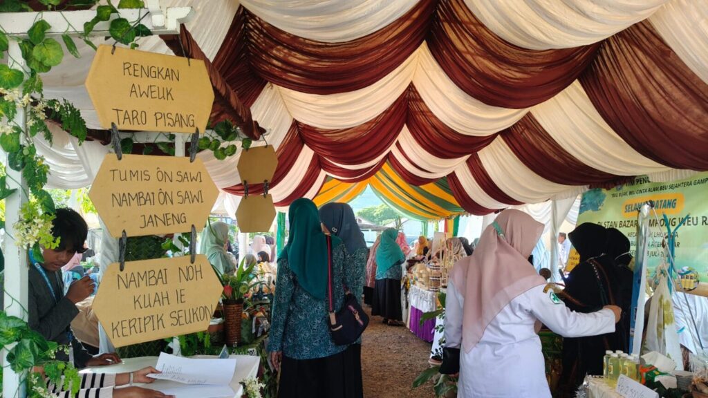 Misalnya, kata Desy, penggunaan kemasan-kemasan yang ramah lingkungan. Seperti yang ada di stan-stan tersebut, air tebu dan air nira dihidangkan dalam “tumbler” dari bambu; bubur pedas dalam wadah batok kelapa muda; sayur rebus dalam wadah “mangkok” daun pisang; hingga telur asin yang dibungkus dengan ôn keureusôngsie reuboh dalam wadah tembikar; dan aneka umbi-umbian menggoda selera di atas nyiru berbahan batang bemban (bak bili).