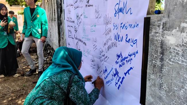 Salah seorang anggota PKK menandatangani komitmen penanggulangan perubahan iklim. (Dok. Foto perempuanleuser.com)